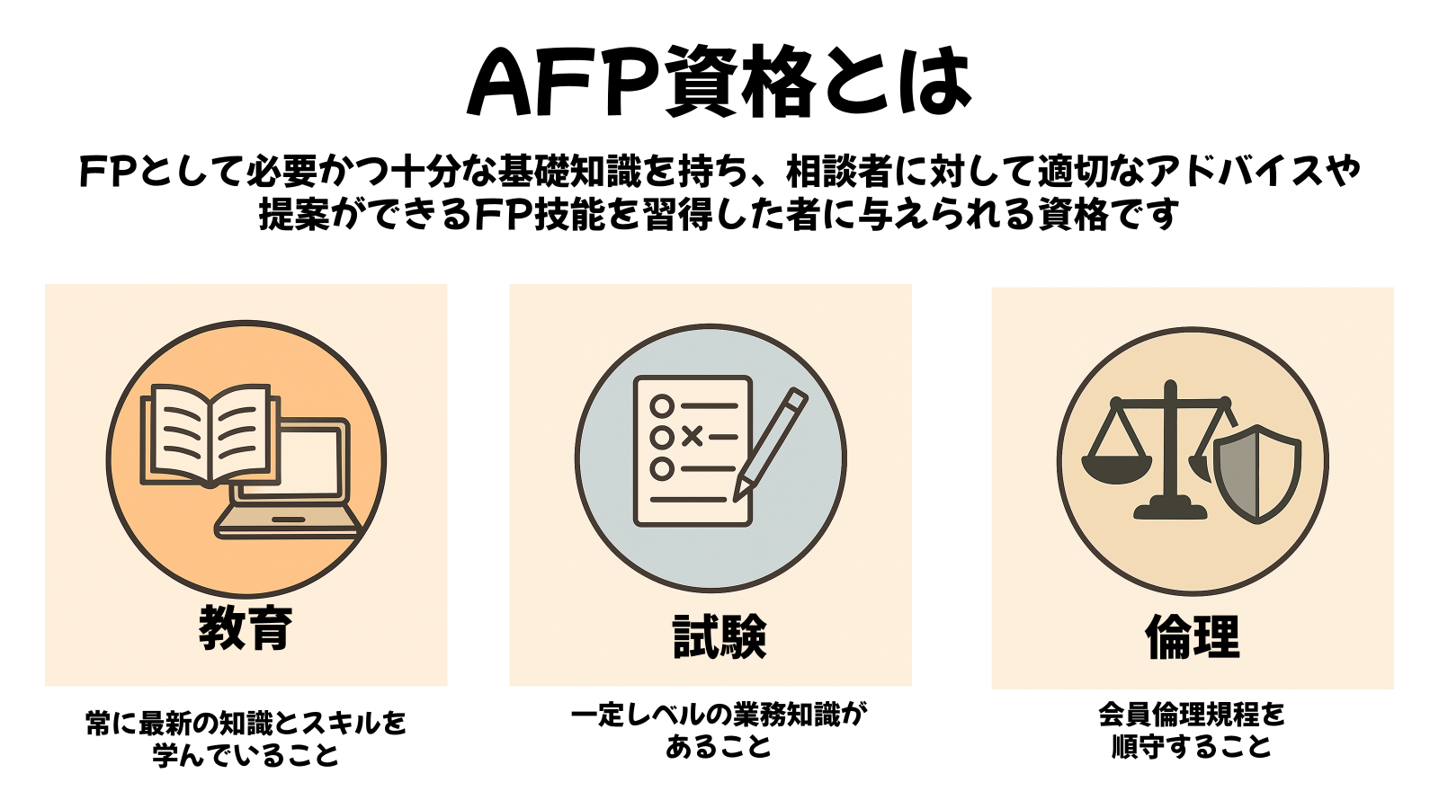 AFP資格は、教育・試験・倫理を重視して、継続的な能力の維持向上を図る仕組みです